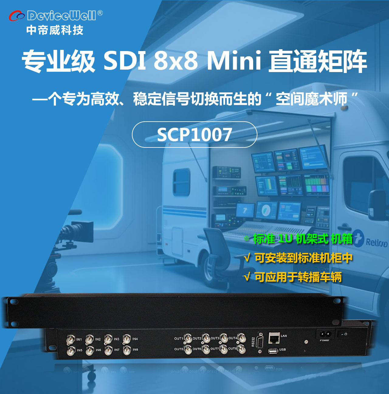 中帝威 SDI 8x8 Mini直通矩阵SCP1007:智能均衡,稳定传输,专业信号切换之选