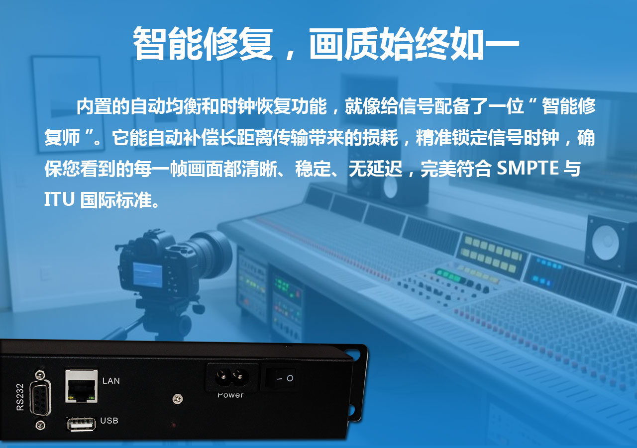 内置的自动均衡和时钟恢复功能,就像给信号配备了一位“智能修复师”。它能自动补偿长距离传输带来的损耗,精准锁定信号时钟,确保您看到的每一帧画面都清晰、稳定、无延迟,完美符合SMPTE与ITU国际标准。