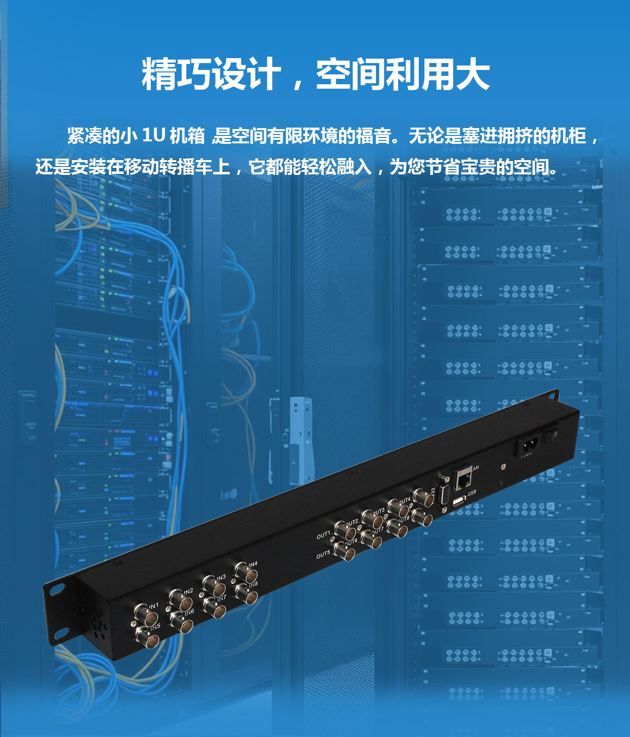 紧凑的小1U机箱,是空间有限环境的福音。无论是塞进拥挤的机柜,还是安装在移动转播车上,它都能轻松融入,为您节省宝贵的空间。