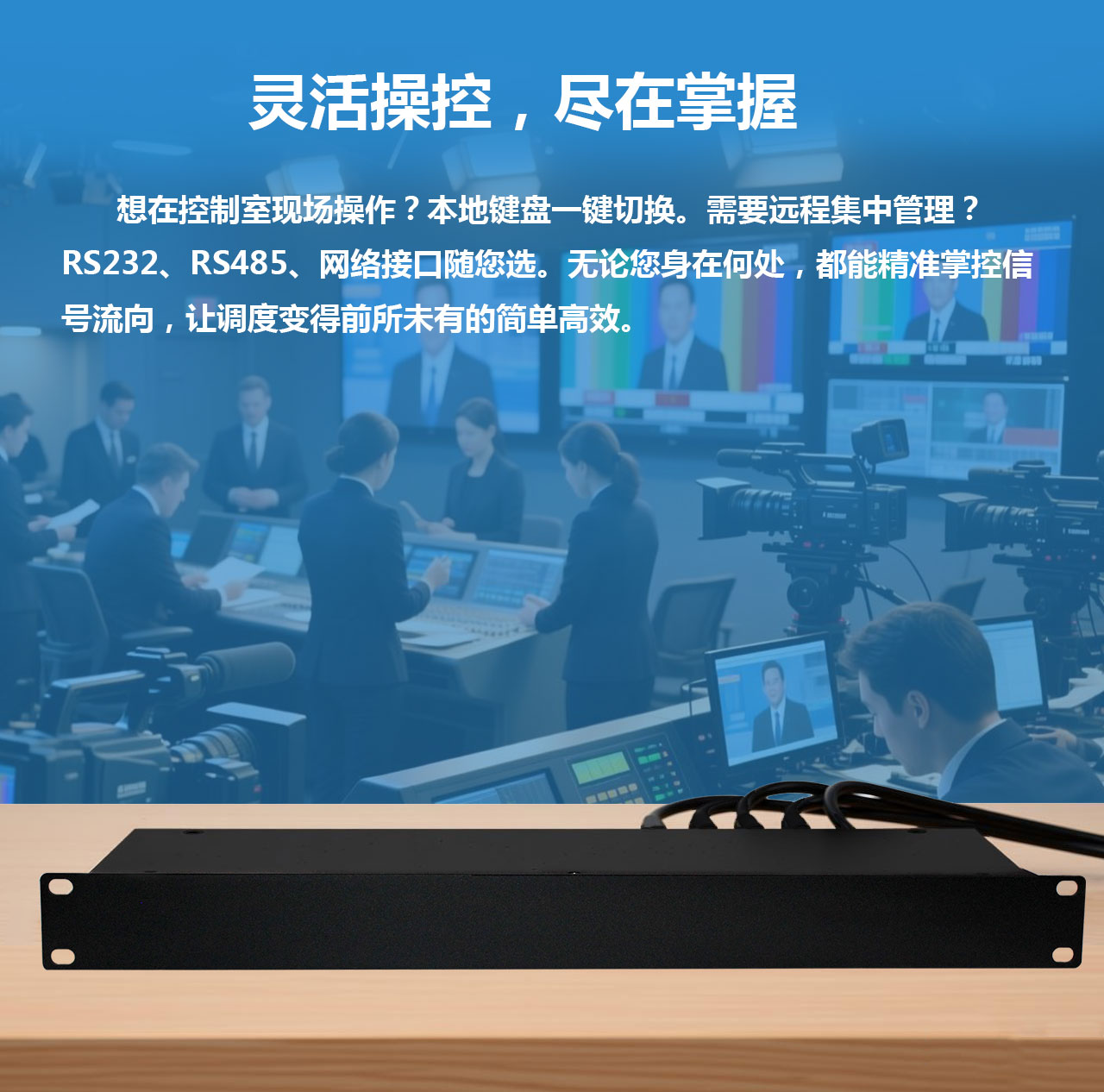 想在控制室现场操作?本地键盘一键切换。需要远程集中管理?RS232、RS485、网络接口随您选。无论您身在何处,都能精准掌控信号流向,让调度变得前所未有的简单高效。