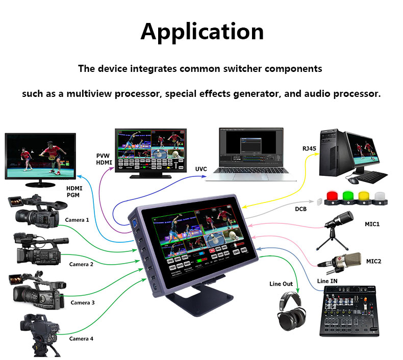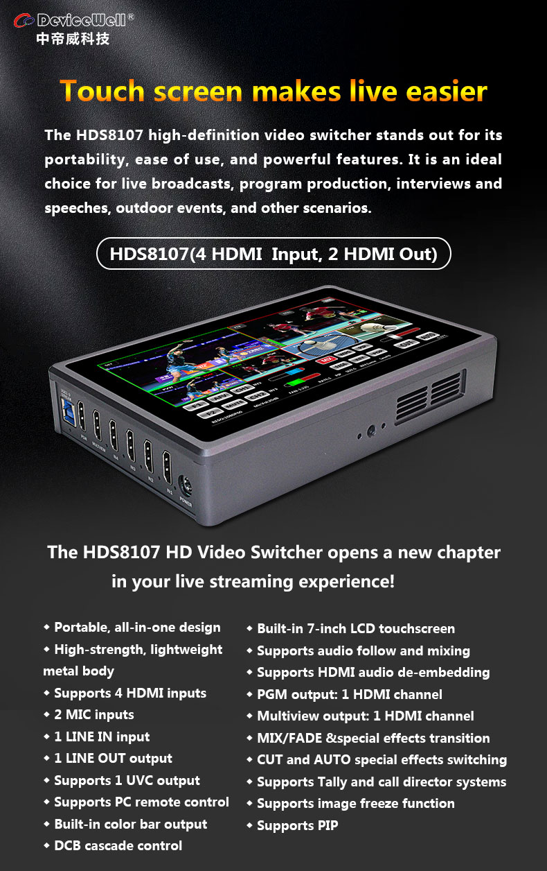 Switcher Guide switcher Special effect switcher Video switcher Professional switcher upgrading synchronizing HDMI Switcher Small Switcher DeviceWell