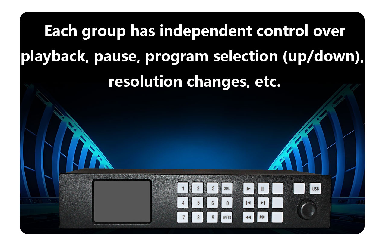 ◇Each group has independent USB playback, with different resolutions and program sources available for selection